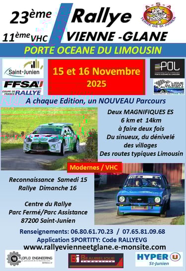 Rallye se déroulant autour de St Junien avec au programme 2 spéciales à faire 2 fois.