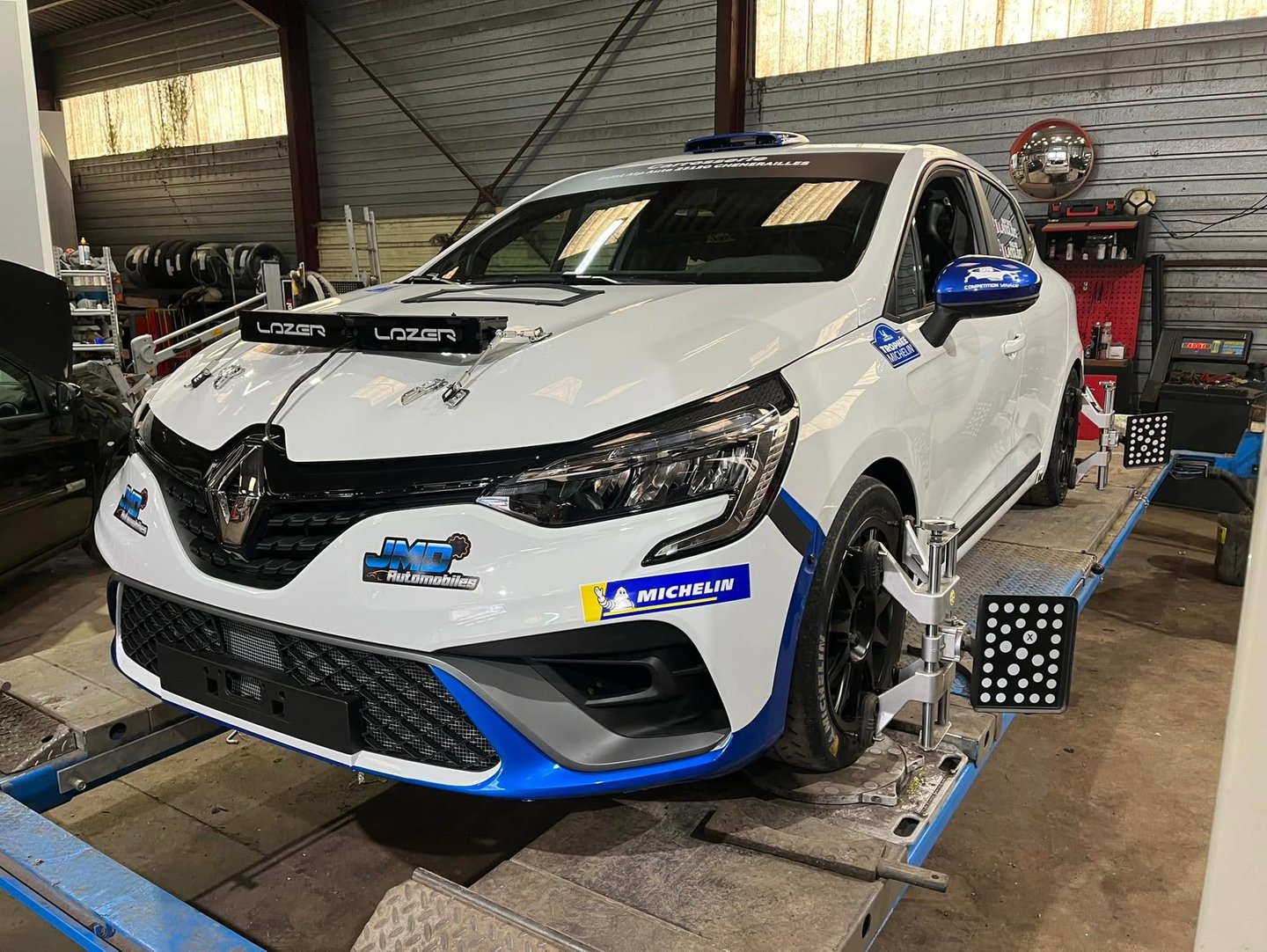 Châssis : Clio RS Line. Coque et arceau en acier, direction assistée électrique